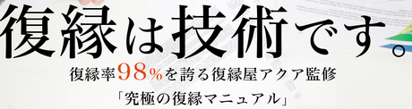 相手に連絡することができる状況であっても、復縁となると話は別で、そこには技術が介在します。このマニュアルでは、復縁のプロが使っている技をお教えし、あなたの状況に合わせた手法で実際に復縁を進めていきます。